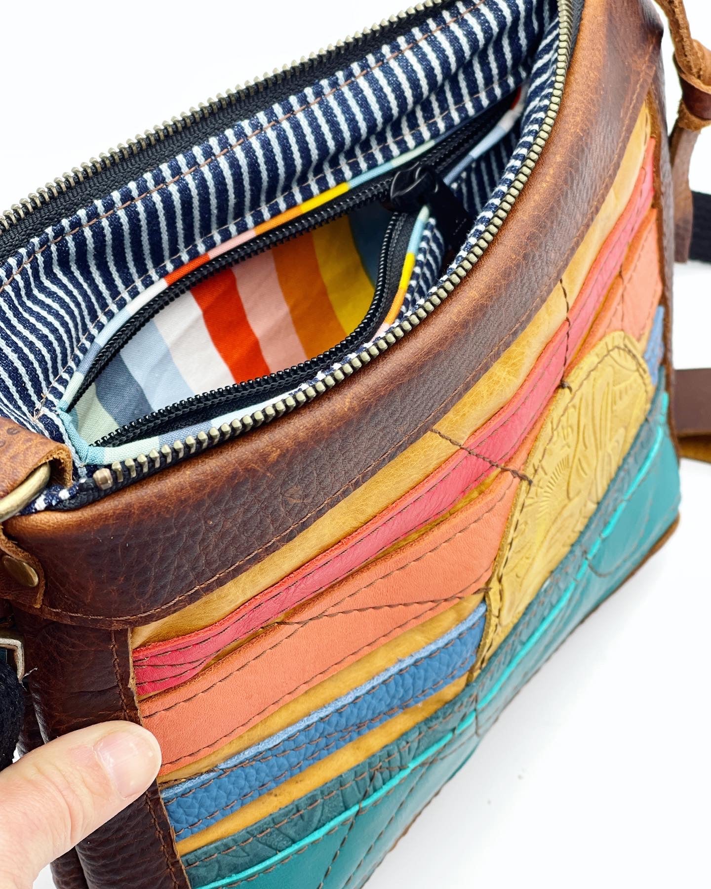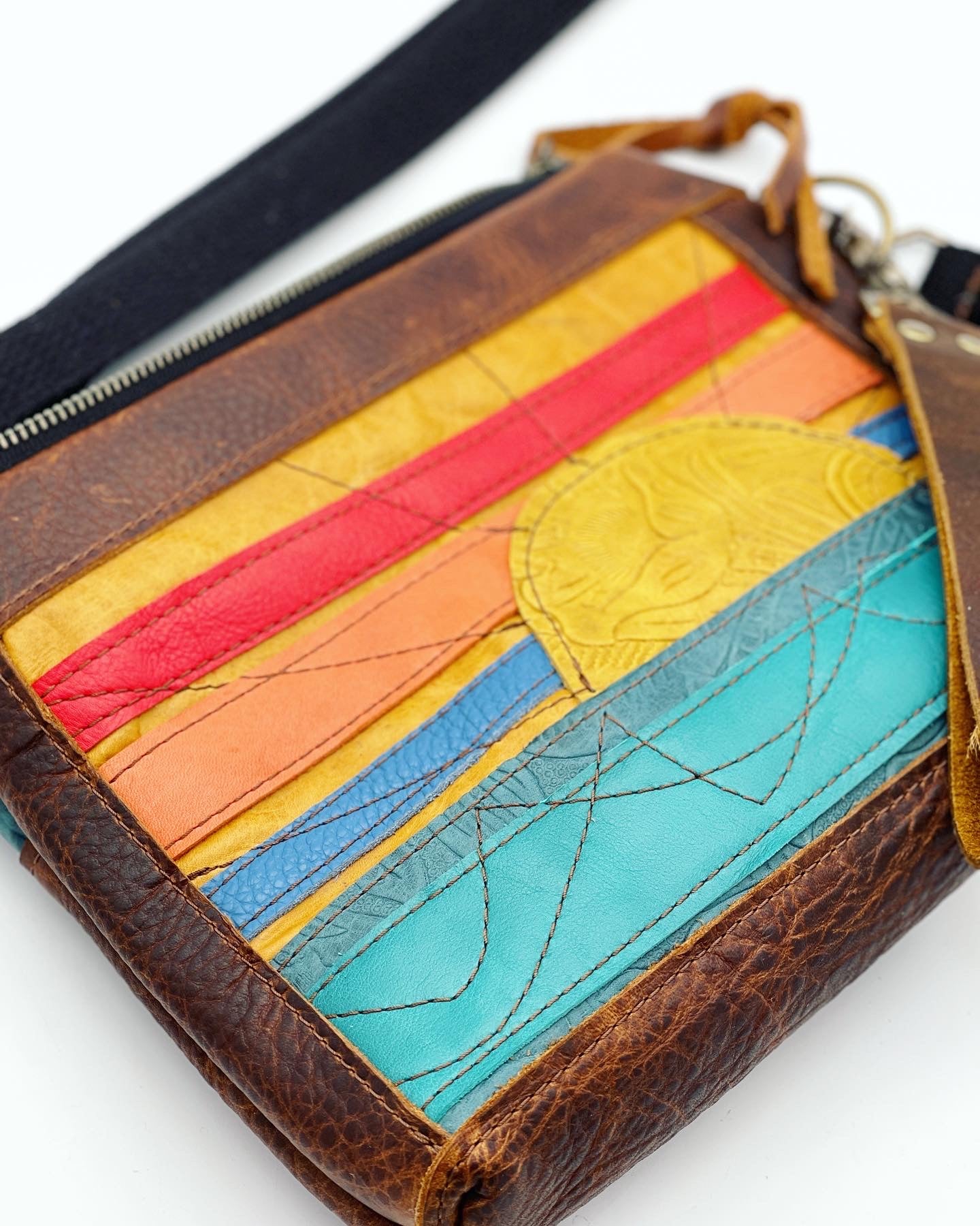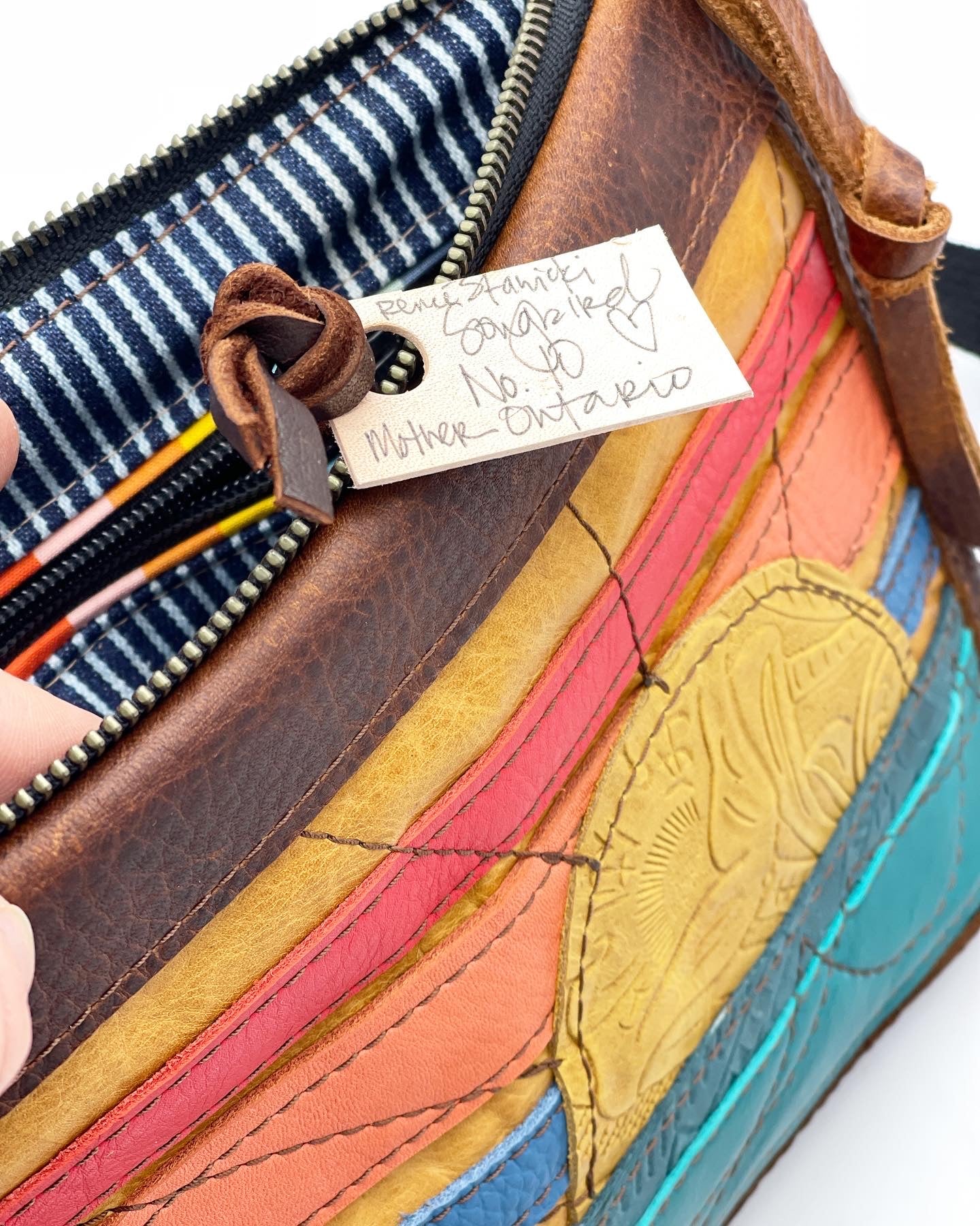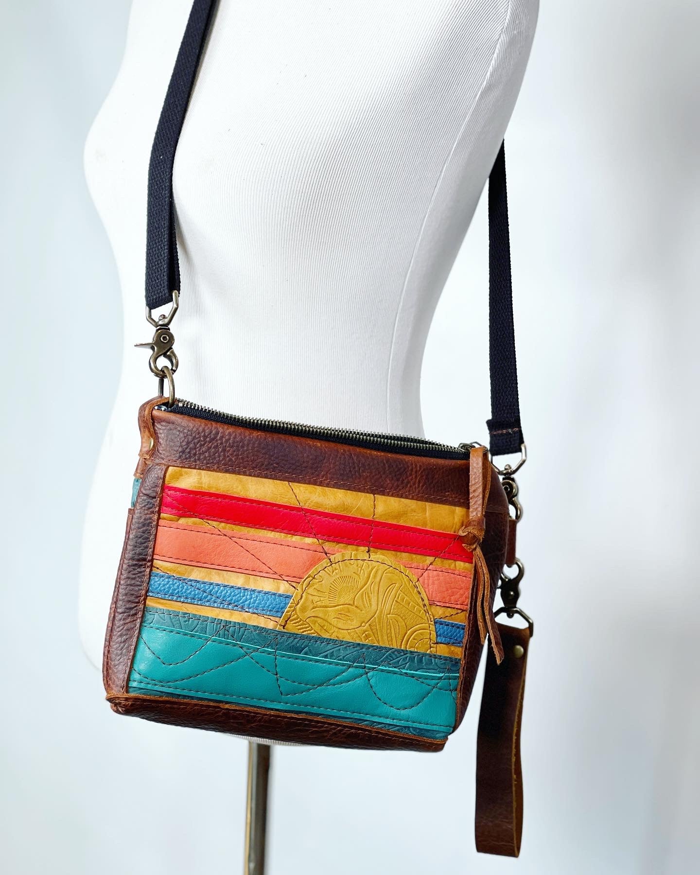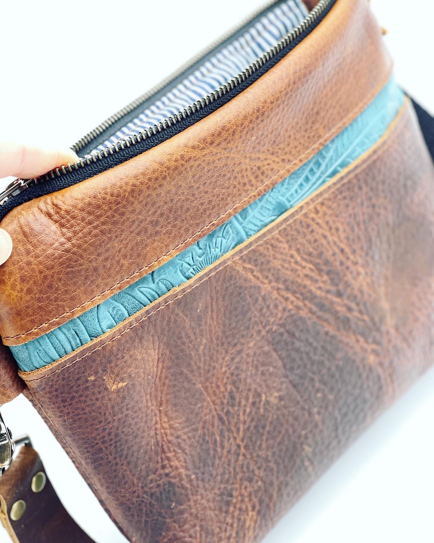This one of a kind bag was handcrafted in upstate New York on the shores of one of the beautiful places on earth! It was inspired by the sailing voyages our family makes on Great Lake Ontario. Each piece in this series is numbered and one of a kind. Brown Kodiak oil tanned leather is very supple and durable. Plan to have this piece forever as your little piece of this amazing place we call home! Your bag was made thoughtfully with love by a small family of sailors, we thank you for shopping small with us! This bag can be worn as a wristlet or crossbody, it comes with an adjustable crossbody(black webbing) and leather wrist strap