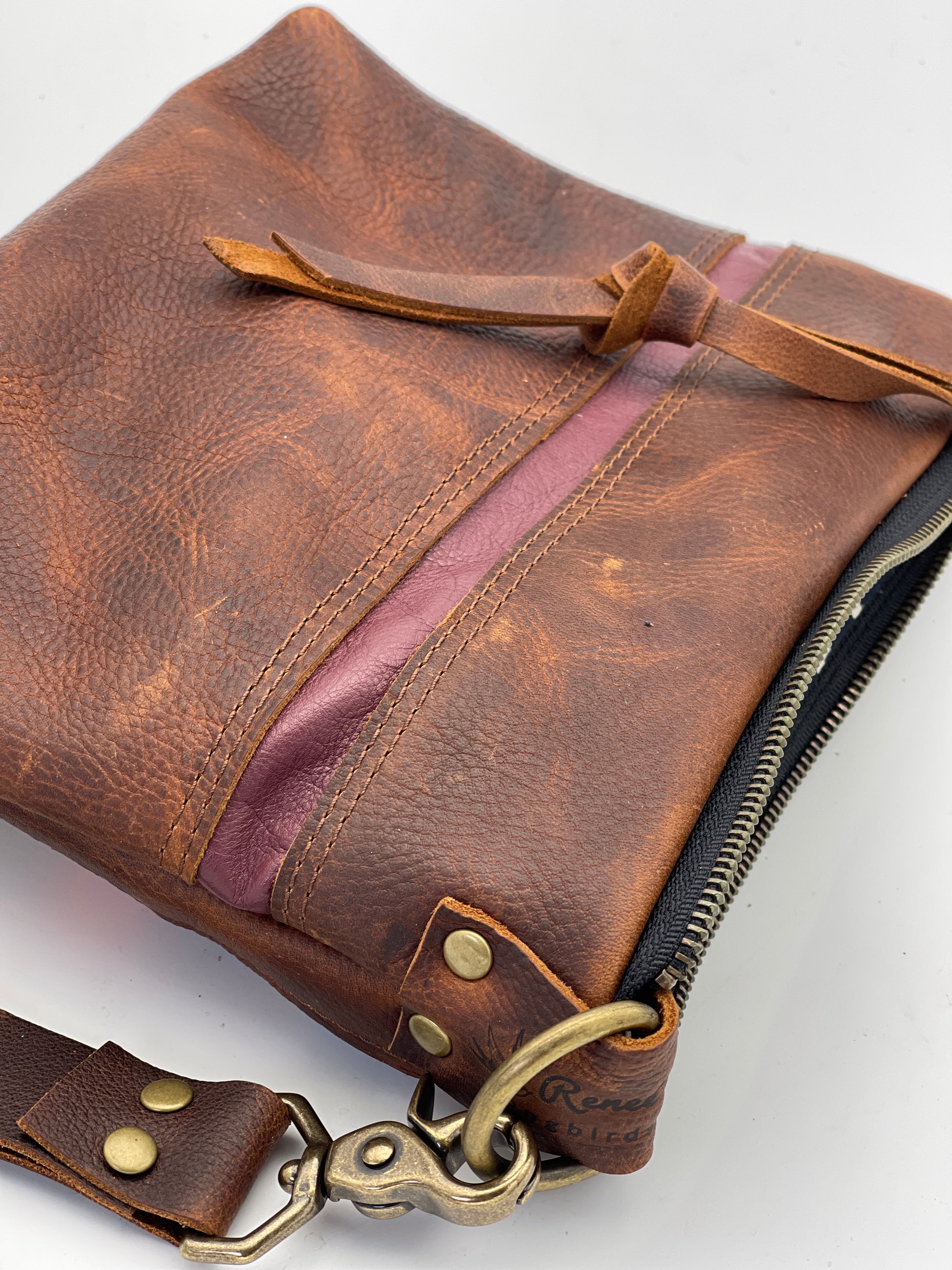 This one of a kind bag was handcrafted in upstate New York on the shores of one of the beautiful places on earth! It was inspired by the sailing voyages our family makes on Great Lake Ontario. Each piece in this series is numbered and one of a kind. Brown Kodiak oil tanned leather is very supple and durable. Plan to have this piece forever as your little piece of this amazing place we call home! Your bag was made thoughtfully with love by a small family of sailors, we thank you for shopping small with us! This bag can be worn as a wristlet or crossbody, it comes with a 7” brown leather wrist strap -extra strap sold separately.
