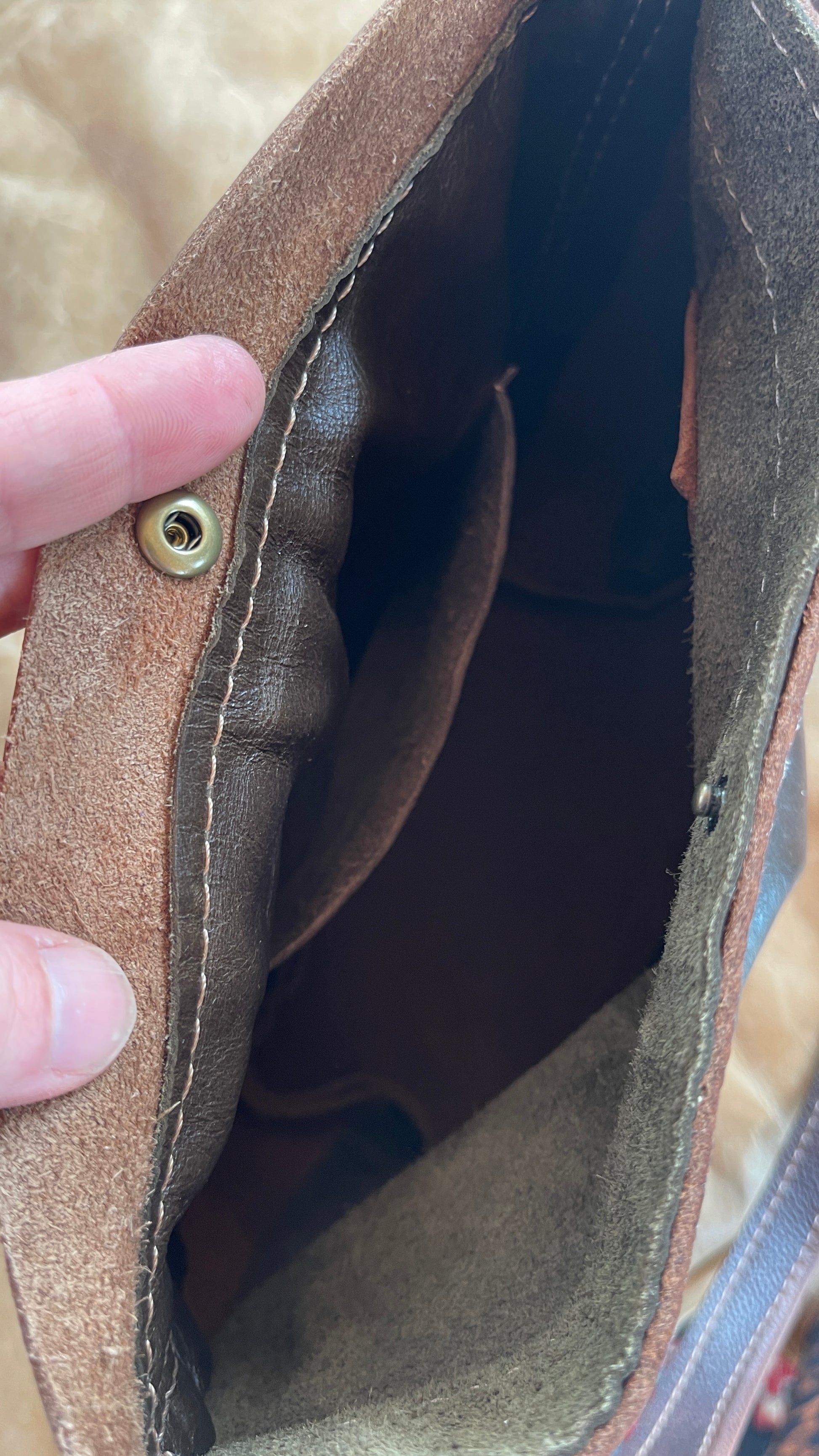 partially lined with thinner leather, interior slip pocket